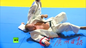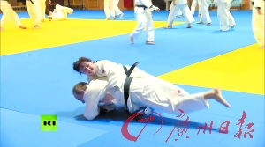 普京拥有柔道黑带,在8日的切磋中把一些队员轻松掀倒。