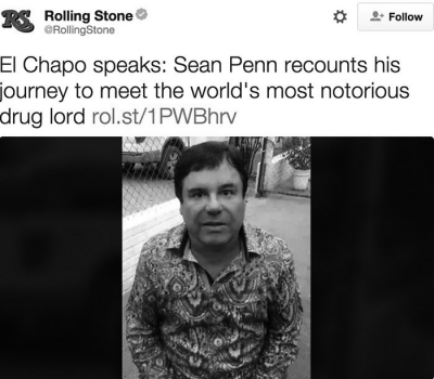 西恩·潘说,2015年8月,即古斯曼第二次越狱次月,他和朋友找到墨西哥女影星凯特·德尔卡斯蒂略,请她牵线搭桥以采访古斯曼,并打算在《滚石》杂志上发表采访文章。