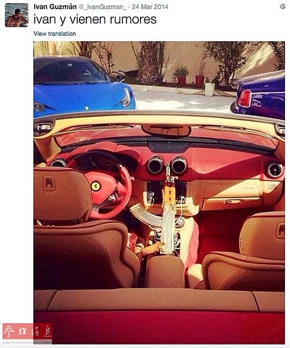 【爱玩社交网络的毒枭一家】据英国《每日邮报》2015年7月21日报道,绰号“矮子(El Chapo)”的墨西哥头号大毒枭华金·古斯曼(Joaquin 'El Chapo' Guzman)7月稍早前从号称墨西哥联邦区安全系数最高的“高原”监狱再次成功越狱。在他在逃之际,他的三个儿子一个女儿完全不顾风险,在网上高调炫富,狂妄行径让人瞠目结舌。实际上,在他再次越狱之前,负责运营他的推特账号的大儿子伊凡·古斯曼(Ivan Archivaldo Guzman)就在网上对他的18万粉丝爆料称:“耐心之人必有所得!”。父亲成功逃狱之后,伊凡更是得意洋洋得在网上对墨西哥政府喊话称:“当警察们开始找牛的时候,我爸已经拿着奶酪回家了。”