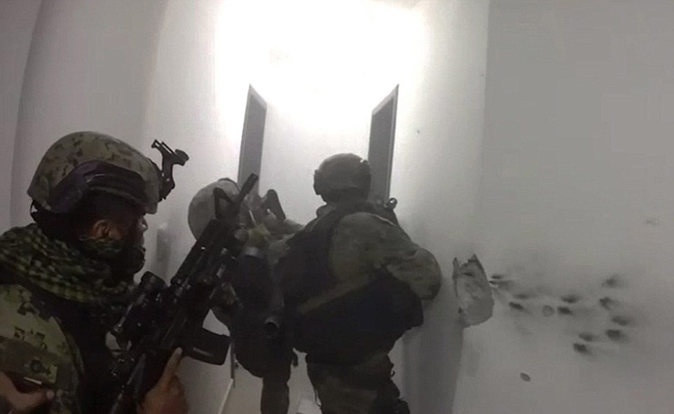 周一,墨西哥电视台播出了墨西哥海军在搜捕行动中的枪击画面。(网页截图)