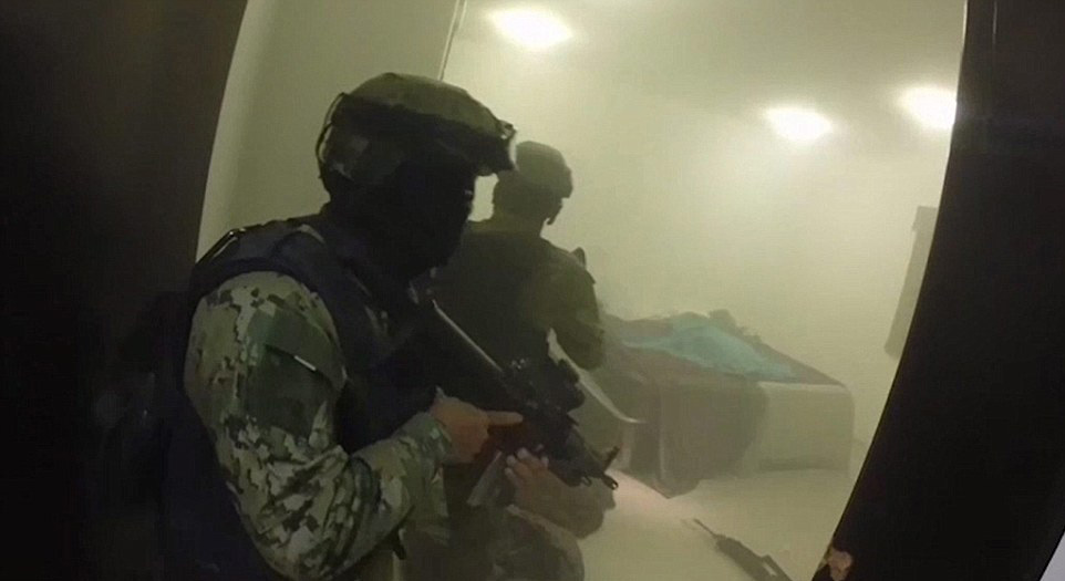 周一,墨西哥电视台播出了墨西哥海军在搜捕行动中的枪击画面。(网页截图)