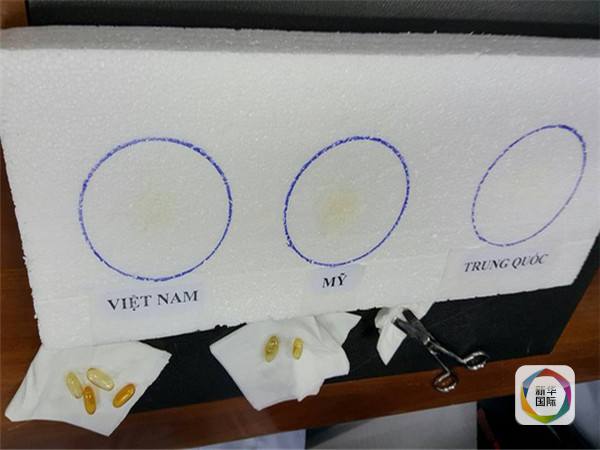 越南媒体报道称,在收到广义省食品安全局送交的样品之前,越南国家食品安全检验中心对当地市场上销售的分别产自中国、美国和越南的3种鱼油保健品进行了检测,这些鱼油样品都是已登记注册、经正规渠道销售的产品。检验人员将3种鱼油样品分别滴在泡沫塑料上,一分钟后,3种样品都出现了溶解泡沫塑料的现象,6分钟后,其中两种样品将泡沫塑料局部完全溶解并穿透。检验人员同时对3种样品所含成分等进行了检验,没有发现有害物质。