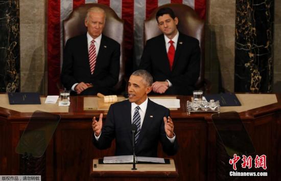 当地时间2016年1月12日晚,美国华盛顿,美国总统奥巴马进行其总统任期内的最后一次国情咨文,也是其第七次进行国情咨文。