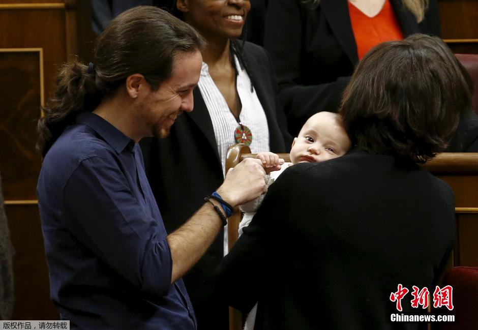 西班牙议会召开选后首次会议 女议员抱儿子亮相(图)