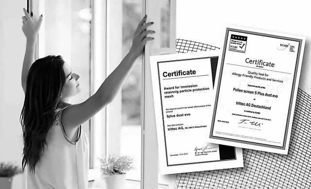 ▲ 德国Trittec公司网站上的防霾窗纱图片及证书