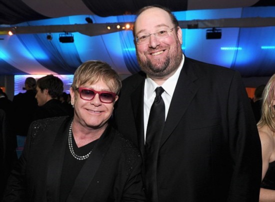 给所有员工买了彩票的健康中心的老板雷布(右),2012年与英国摇滚明星艾尔顿·约翰在洛杉矶合影(网页截图)