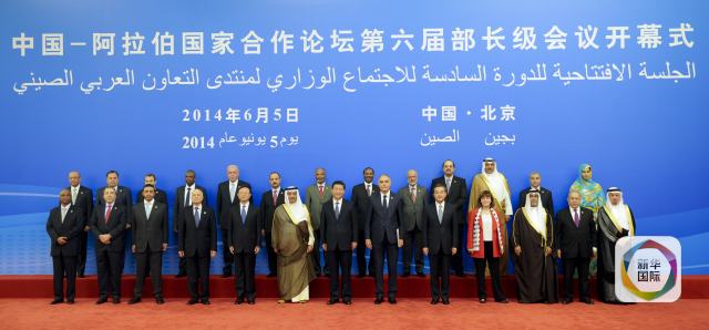 2014年6月5日,国家主席习近平在北京人民大会堂会见来华出席中阿合作论坛第六届部长级会议的阿拉伯国家代表团团长。(新华社记者张铎摄)