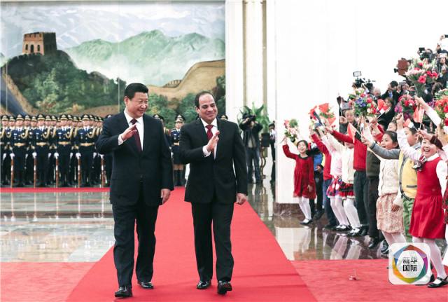 2014年12月23日,国家主席习近平在北京人民大会堂同埃及总统塞西举行会谈。会谈前,习近平在人民大会堂北大厅为塞西举行欢迎仪式。 (新华社记者刘卫兵摄)