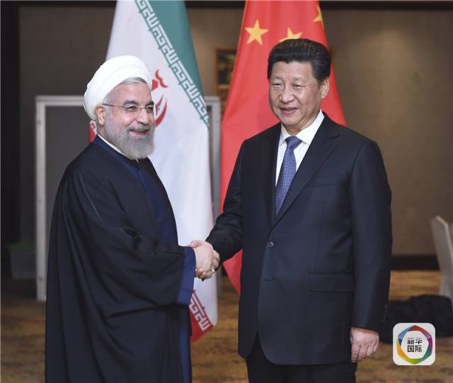 2015年4月23日,国家主席习近平在雅加达会见伊朗总统鲁哈尼。(新华社记者张铎摄)