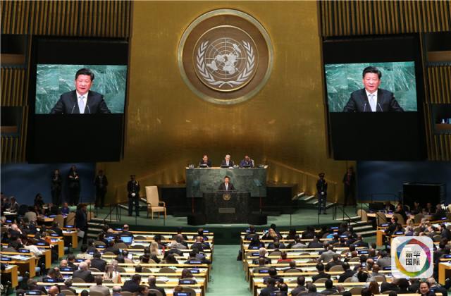 2015年9月28日,国家主席习近平在纽约联合国总部出席第70届联合国大会一般性辩论并发表重要讲话。(新华社记者庞兴雷摄)
