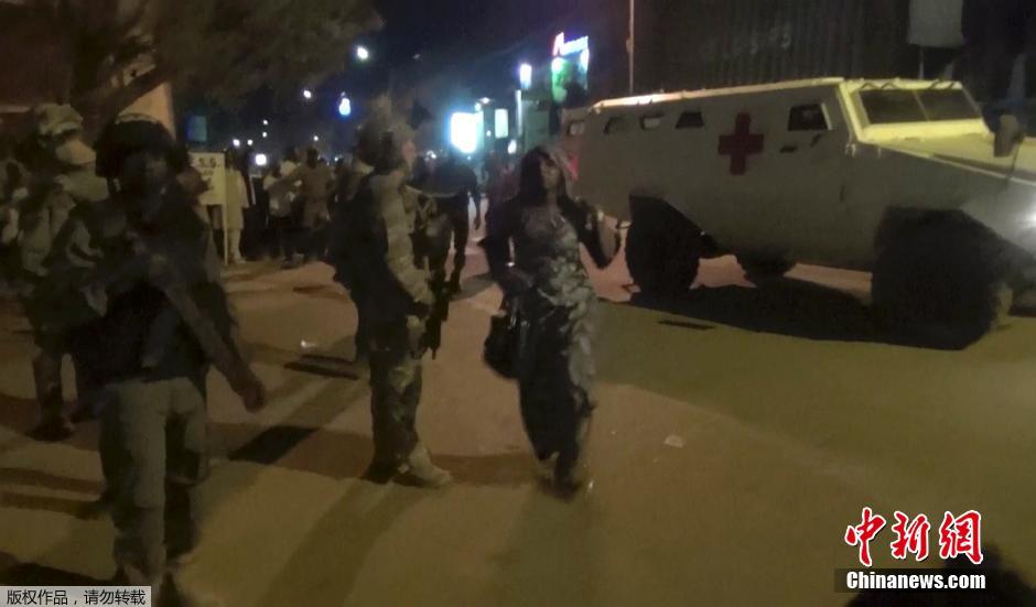 据外媒当地时间1月16日报道,布基纳法索内政部长称,目前已经有126名人质从遭恐怖分子袭击的首都酒店中逃出,3名恐怖分子被击毙。图为布基纳法索军方进行人质解救行动。
