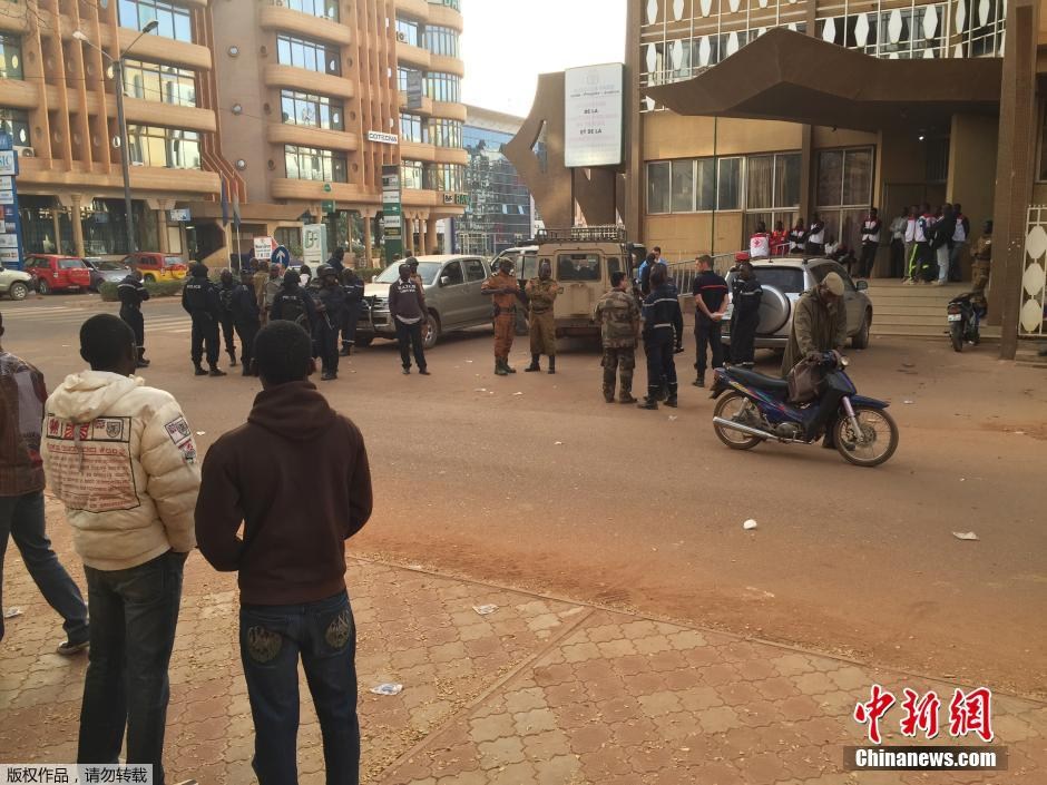 据外媒当地时间1月16日报道,布基纳法索内政部长称,目前已经有126名人质从遭恐怖分子袭击的首都酒店中逃出,3名恐怖分子被击毙。图为布基纳法索军警收复酒店。