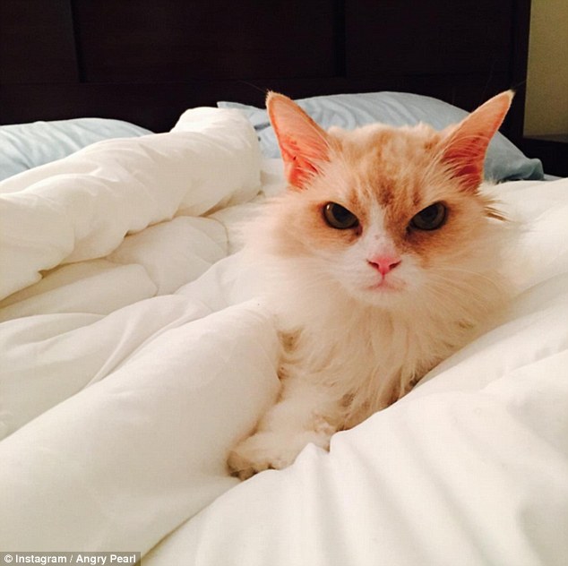 带着Pearl回家后,这对情侣便忍不住给一直摆生气脸的Pearl拍照。不过,这对情侣称虽然Pearl看起来一直是生气脸,但它还是有着猫咪的天性,会粘人,会撒娇,只是表情一直不怎么变而已。