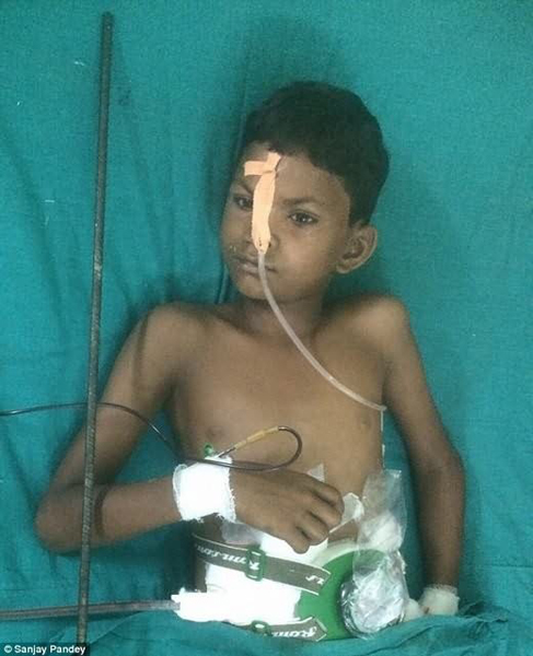印度10岁男童被1米多长钢筋贯穿身体奇迹生还