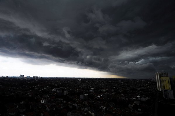 2013年1月23日,乌云聚集在印度尼西亚首都雅加达的上空。