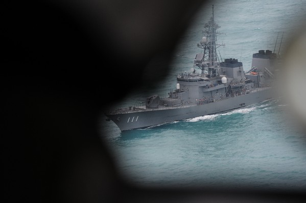 2015年1月6日,一艘马来西亚军舰参与亚航失事客机残骸的打捞工作。