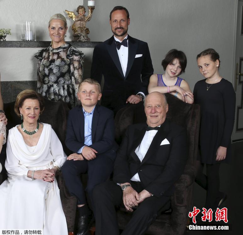 2016年1月17日消息,挪威皇室发布一组王室成员合影和全家福,纪念哈拉尔五世国王加冕25周年。