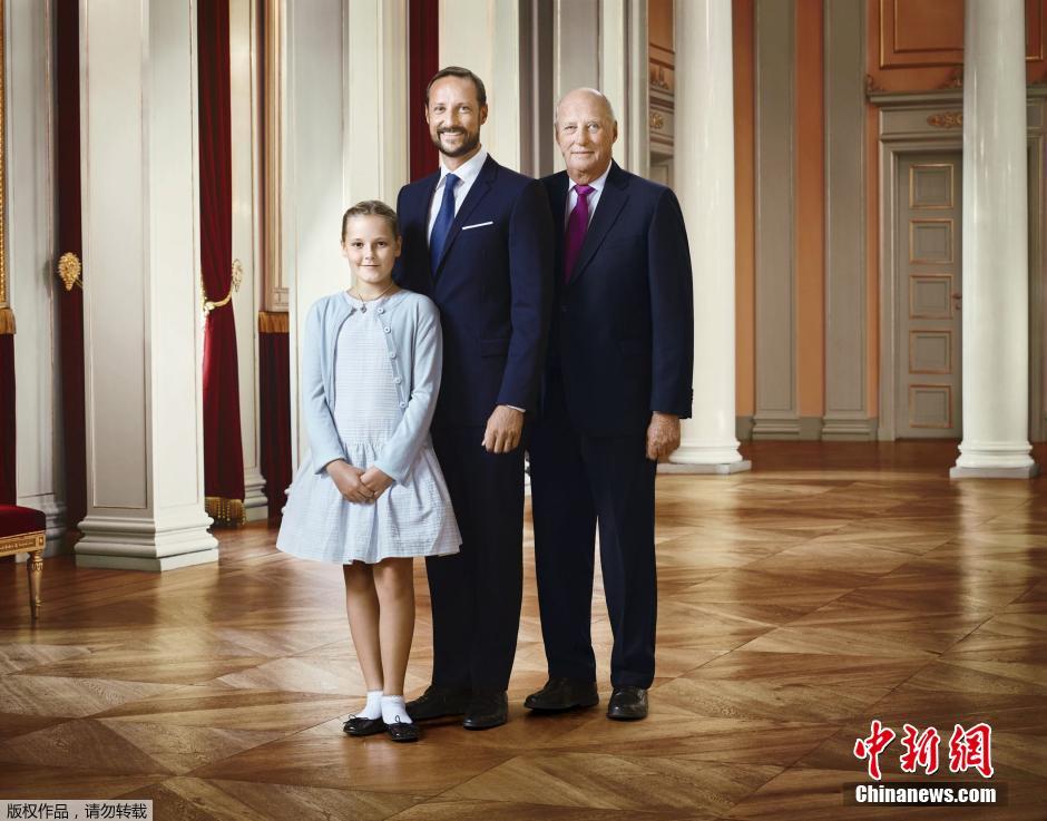 2016年1月17日消息,挪威皇室发布一组王室成员合影和全家福,纪念哈拉尔五世国王加冕25周年。
