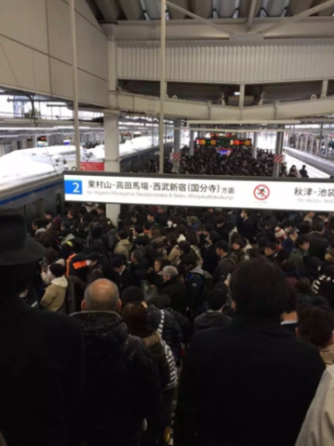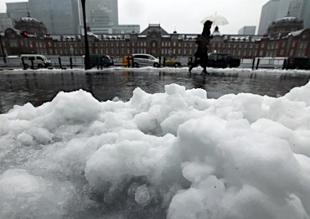 东京市区迎强降雪 70多人受伤交通陷入混乱(图)