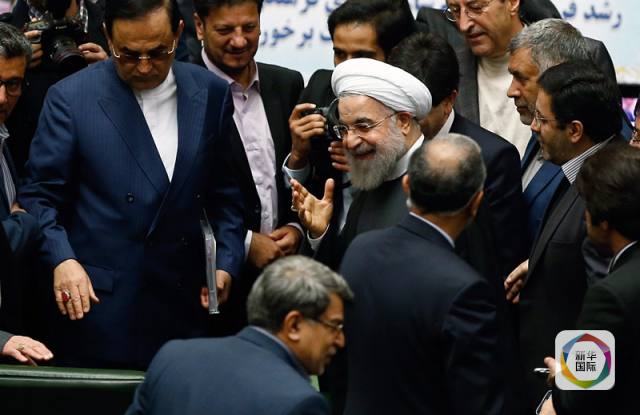 1月17日,伊朗议会成员在德黑兰向伊朗总统鲁哈尼表示祝贺。(新华/欧新中文)