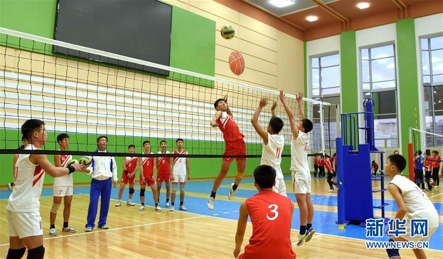 这张朝中社1月18日提供的照片显示,朝鲜学生在平壤万景台学生少年宫练习排球。朝鲜学生在最近改建完工的万景台学生少年宫进行兴趣学习。 新华社/朝中社