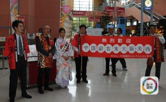 图为日本当地旅游机构欢迎中国游客。(网络图片)