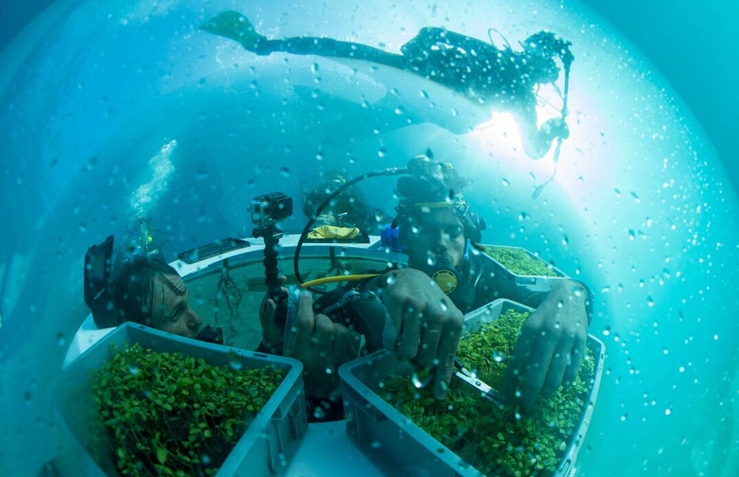 2016年1月18日报道,您见过在水下种豆荚吗?在意大利萨沃纳,你将见识到一项全新的试验——“尼莫的花园水下温室”。透明的球状装置被固定在海床上,内部填充空气,里面种着新鲜的植物,然后靠球体内壁的凝水来保持植物所需的水分。这个试验的目的在于,模拟缺水或缺乏肥沃土壤的环境,试验农作物的种植情况。",