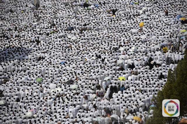 图为2015年9月23日,朝觐者在沙特阿拉伯麦加的阿拉法特山进行祷告。