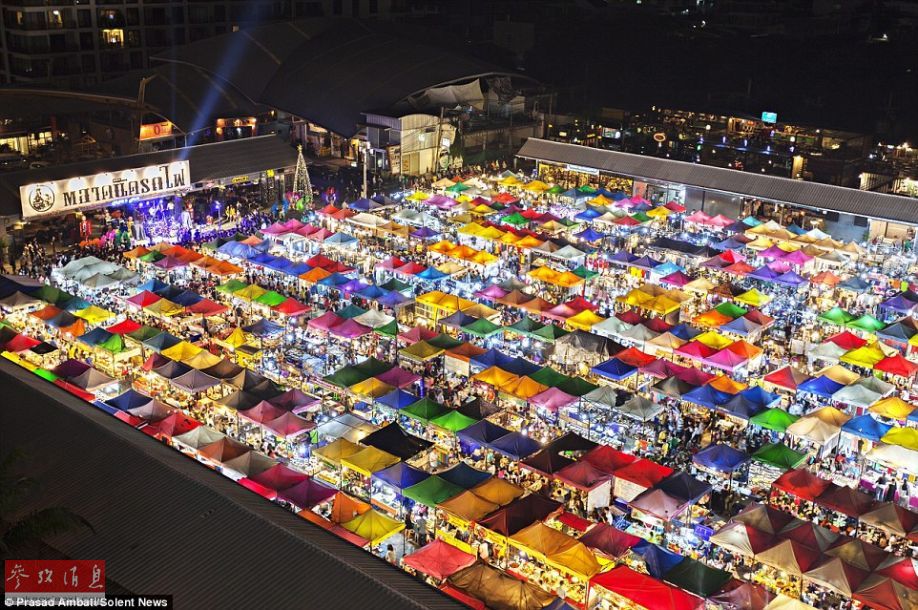 曼谷夜市聚集千余摊位 色彩斑斓如抽象画(图)