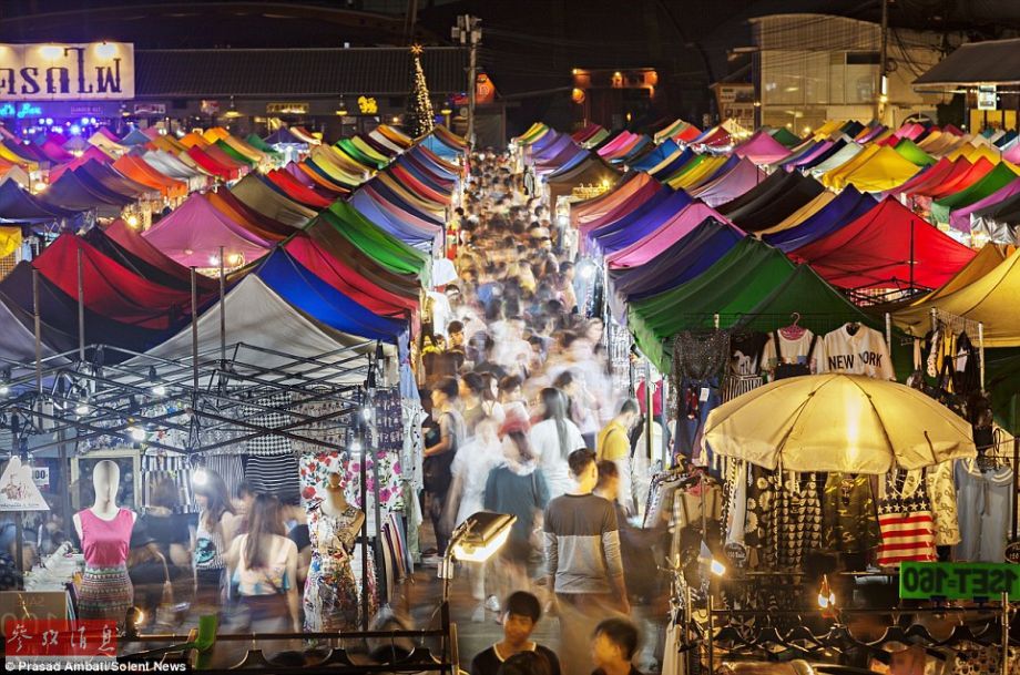 曼谷夜市聚集千余摊位 色彩斑斓如抽象画(图)
