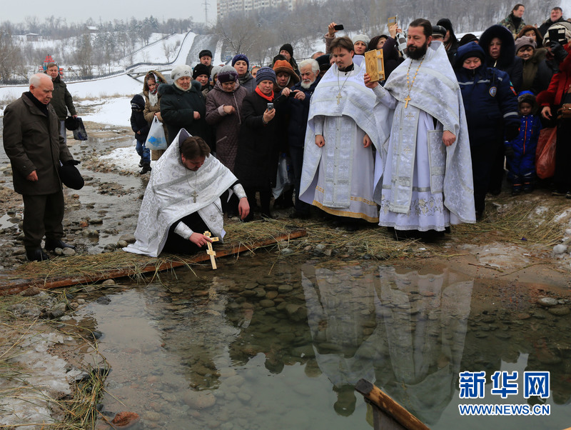 神父给塞兰河赐福。新华网发(米赫耶夫摄)