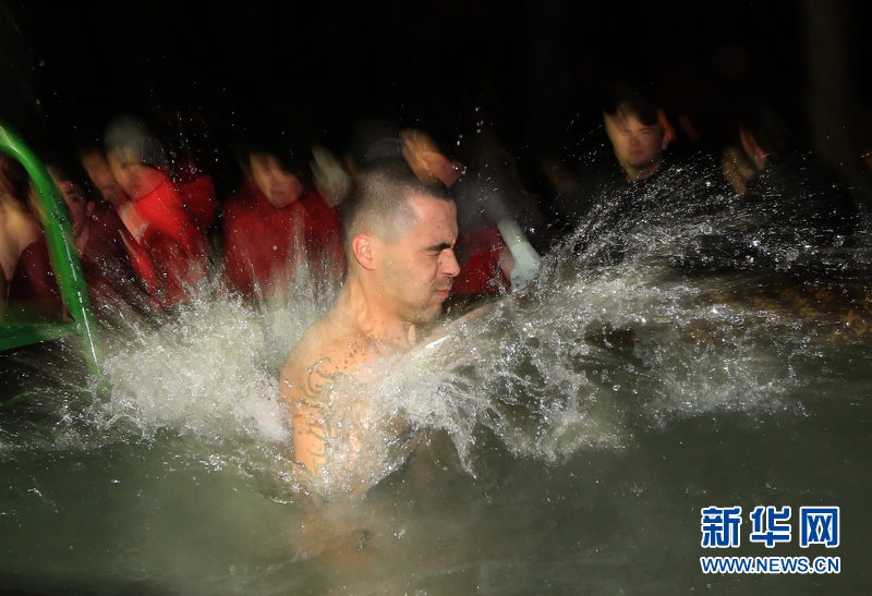一名男子在水池中接受洗礼。新华网发(米赫耶夫摄)