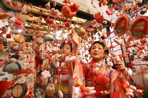 日本人偶挂饰节炫目 缤纷华丽预示新年良缘(图)