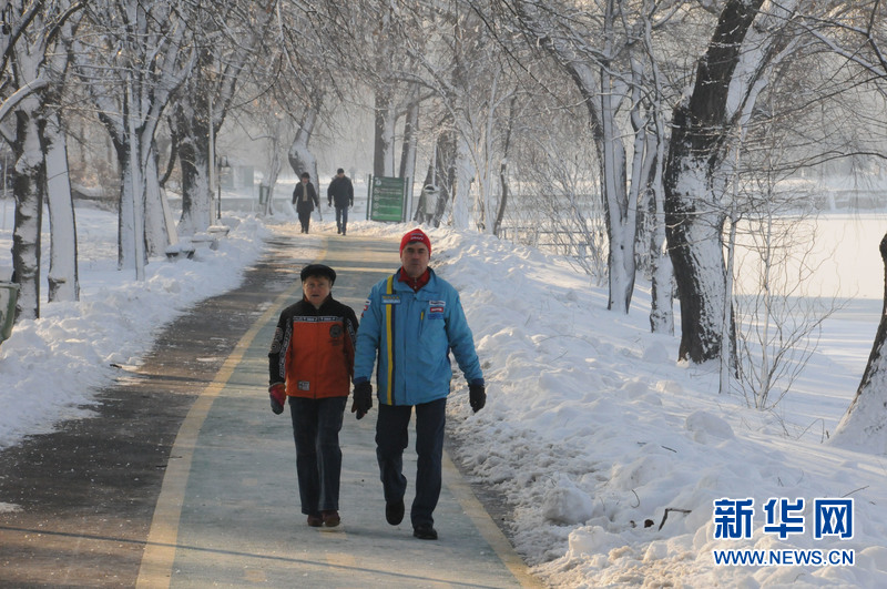 1月20日,人们在公园里散步。包括首都布加勒斯特在内的罗马尼亚大部分地区1月16日至17日遭遇今冬最大的一场降雪,布加勒斯特20日最低温度降到零下19摄氏度,局部地区甚至达到零下22摄氏度。罗马尼亚国家气象局20日发布最新消息称,大部分地区未来几天将遭遇严寒天气,并对除西部4个县以外的其余地区发布严寒黄色预警。新华网记者陈进摄
