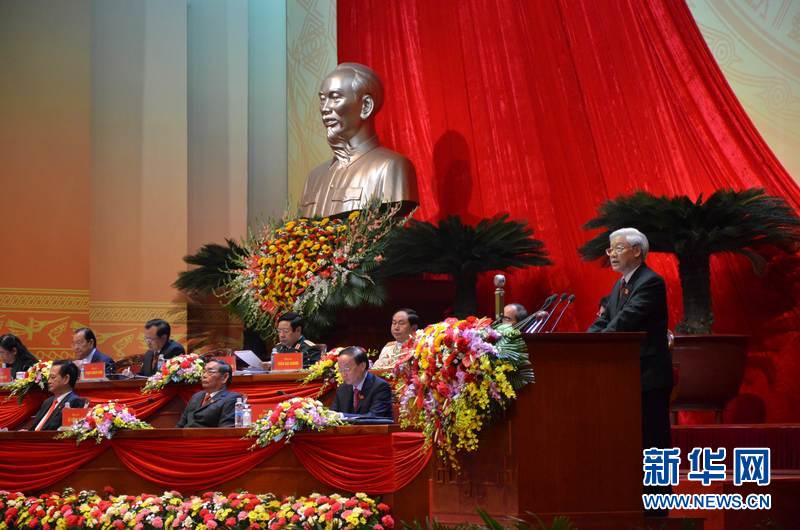 1月21日,在越南首都河内,越共中央总书记阮富仲在越共十二大开幕式上作报告。 当日,越南共产党第十二次全国代表大会在首都河内国家会议中心正式开幕。越共十二大于1月20日至28日在河内召开,届时将选出新一届中央委员会,并在此基础上选出包括越共中央总书记、中央政治局委员等在内的越共新一届领导层。代表越南450多万名党员的1510名代表出席会议。新华网记者闫建华摄