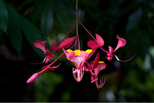 在园内可见,这种植物的花朵呈长串状,略略下垂,颜色鲜艳明丽,更由于其形似佛教中用于装饰佛像等物的璎珞而得名。