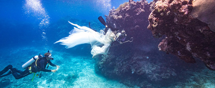 这位摄影师名叫本杰明 冯 王(Benjamin Von Wong)。在本杰明最新的摄影作品中,模特安伯 伯尔克(Amber Bourke)身穿一袭白色纱裙,与水底小鲨鱼们和谐共存。据悉,此次拍摄得到了斐济当地专业的潜水人员和海洋生物专家的大力支持与配合。