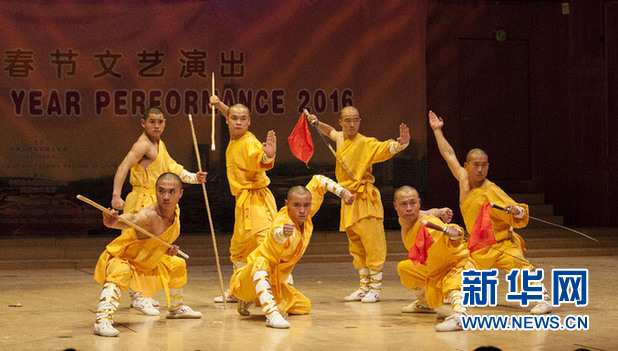 河南省艺术团的演员们在表演少林功夫秀。新华网记者吴波摄