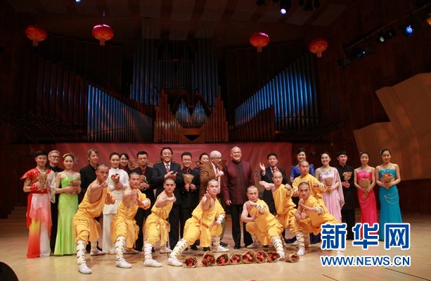 演出结束,演员与嘉宾合影留念。新华网记者吴波摄
