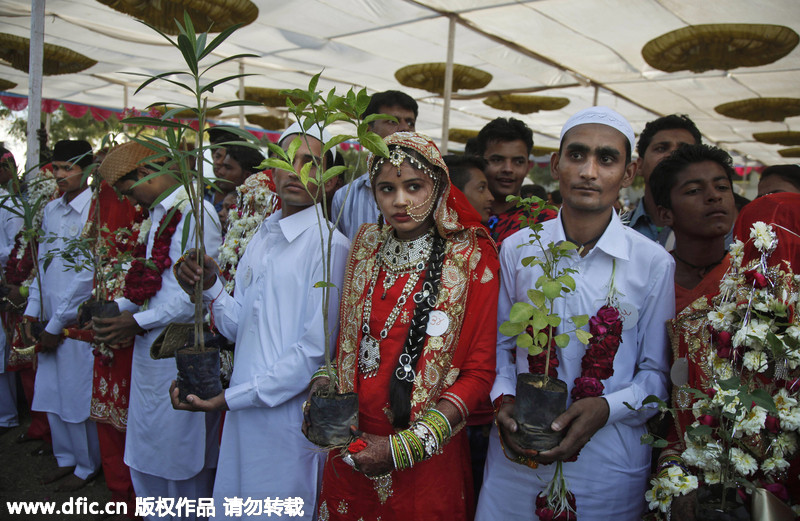 印度100对穆斯林新人举行集体婚礼(高清组图)