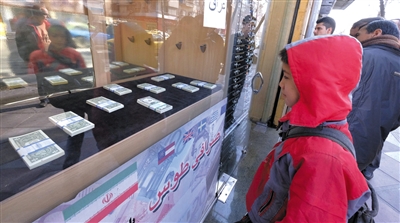 1月17日,德黑兰,一名男孩盯着外汇兑换窗口。