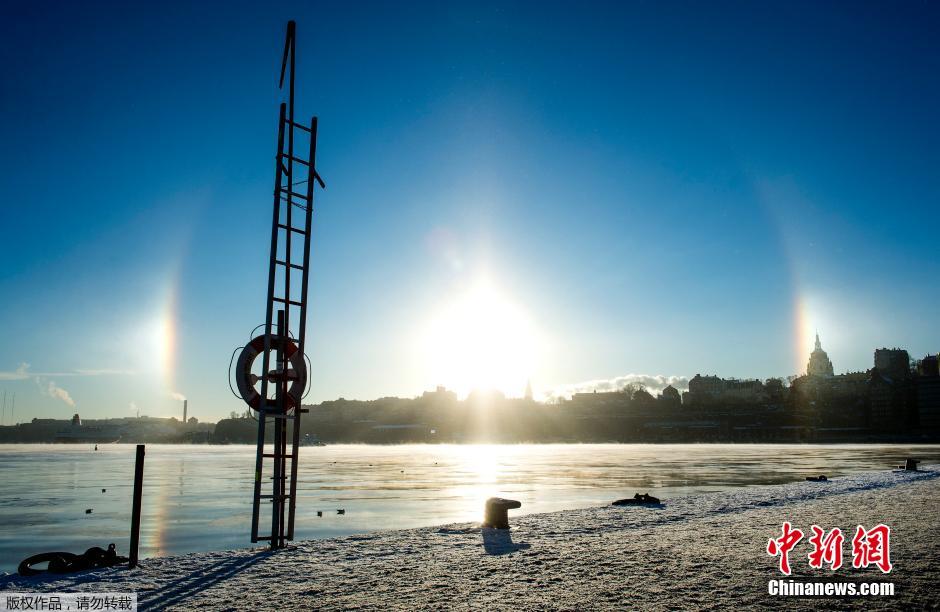 当地时间1月22日,瑞典斯德哥尔摩出现日晕天象。