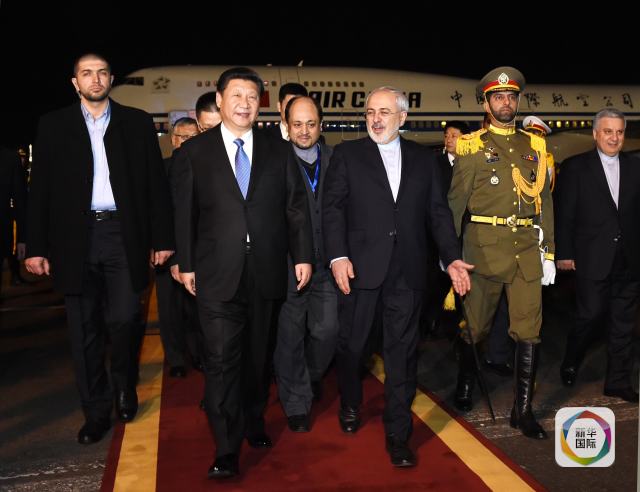 新华网北京1月24日电 1月22日,国家主席习近平乘专机抵达伊朗首都德黑兰,开始对伊朗进行国事访问。这是在梅赫拉巴德机场,习近平受到伊朗外交部长扎里夫等热情迎接。(新华社记者饶爱民摄)
