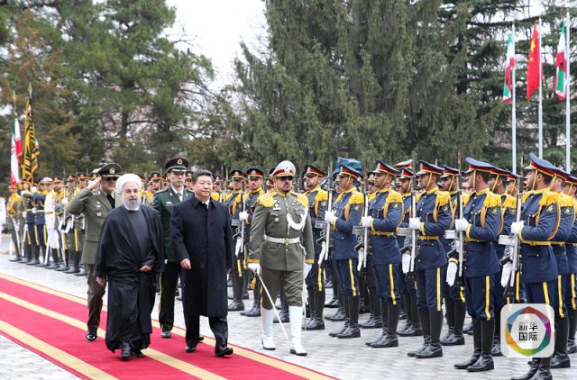 1月23日,国家主席习近平出席伊朗总统鲁哈尼在萨德阿巴德王宫共和国楼广场举行的隆重欢迎仪式。(新华社记者马占成摄)