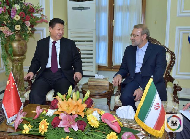 1月23日,国家主席习近平在德黑兰会见伊朗伊斯兰议会议长拉里贾尼。(新华社记者李涛摄)