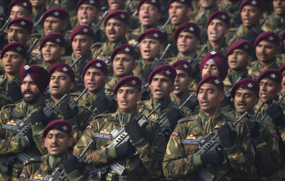 扛枪游行的印度陆军部队。