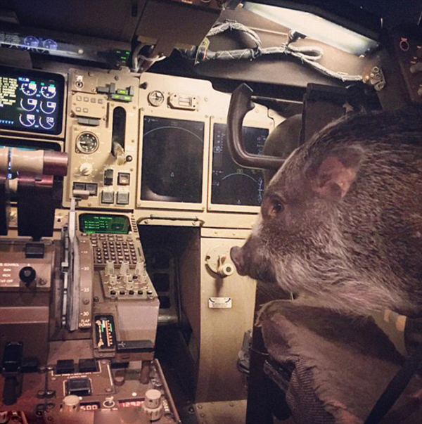 继美国飞机机舱内惊现活火鸡宠物后,近日宠物猪也“飞”上了天。据英国《每日邮报》1月21日报道,美国女子麦耿 皮博迪(Megan Peabody)携带她的宠物猪哈姆雷特(Hamlet)一同乘坐飞机,以缓解飞行时的焦虑不安。