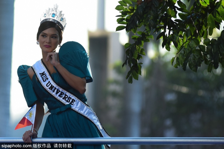 当地时间2016年1月25日,菲律宾马尼拉,菲律宾小姐皮雅·阿龙佐·乌兹巴赫(Pia Alonzo Wurtzbach)夺得2015环球小姐冠军,胜利归国游行受支持者追捧。(图片来源:希帕中国)