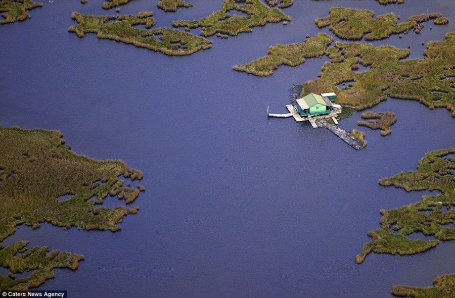 路易斯安那州的湿地,孤独的房子。