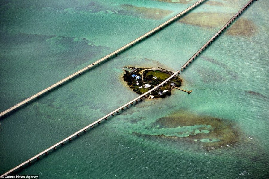 一个小岛,由很长的大桥连接到大陆。